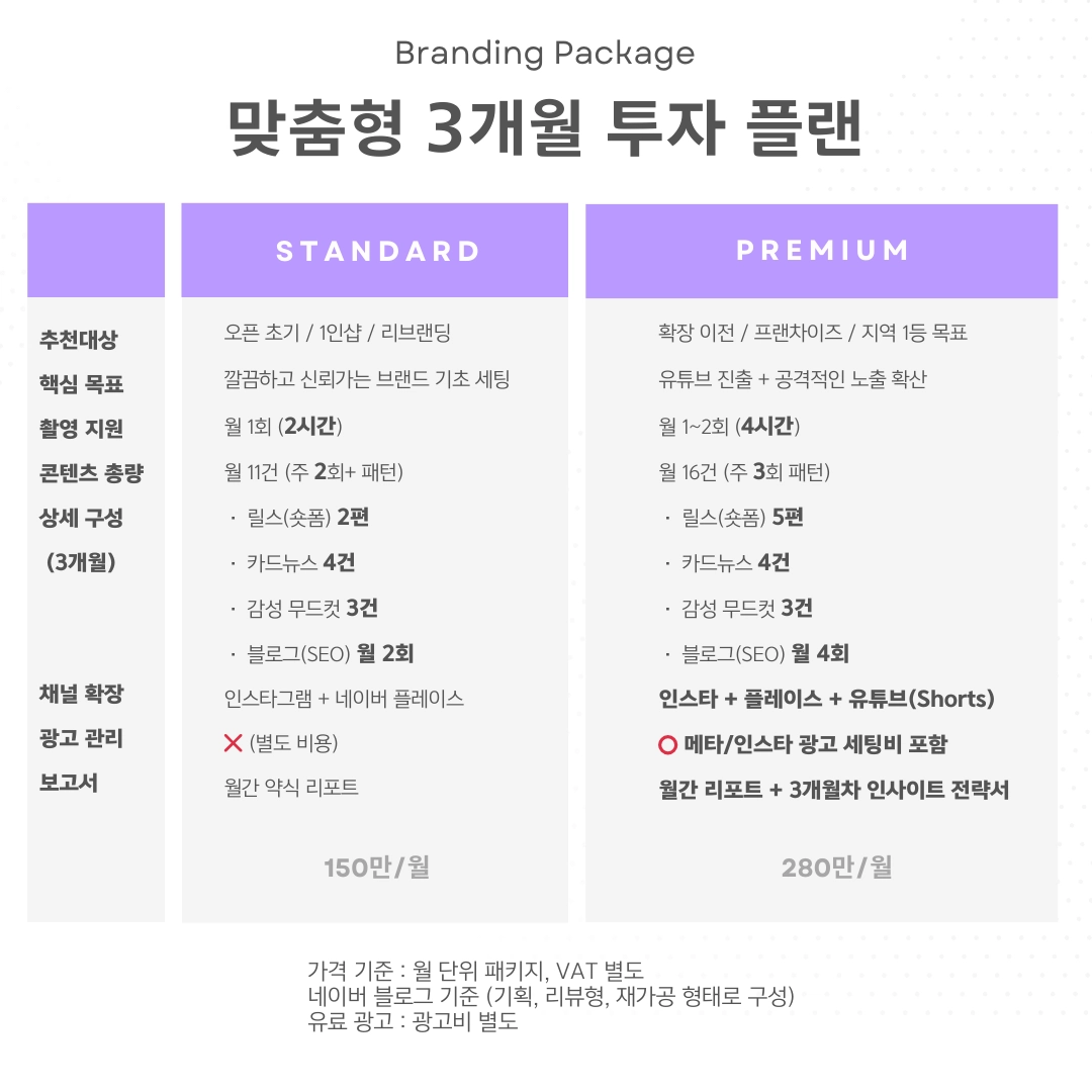 "콘텐츠 제작부터 유튜브·플레이스 확장까지. 대표님의 비즈니스를 동네 명소로 만드는 3개월 로드맵.”